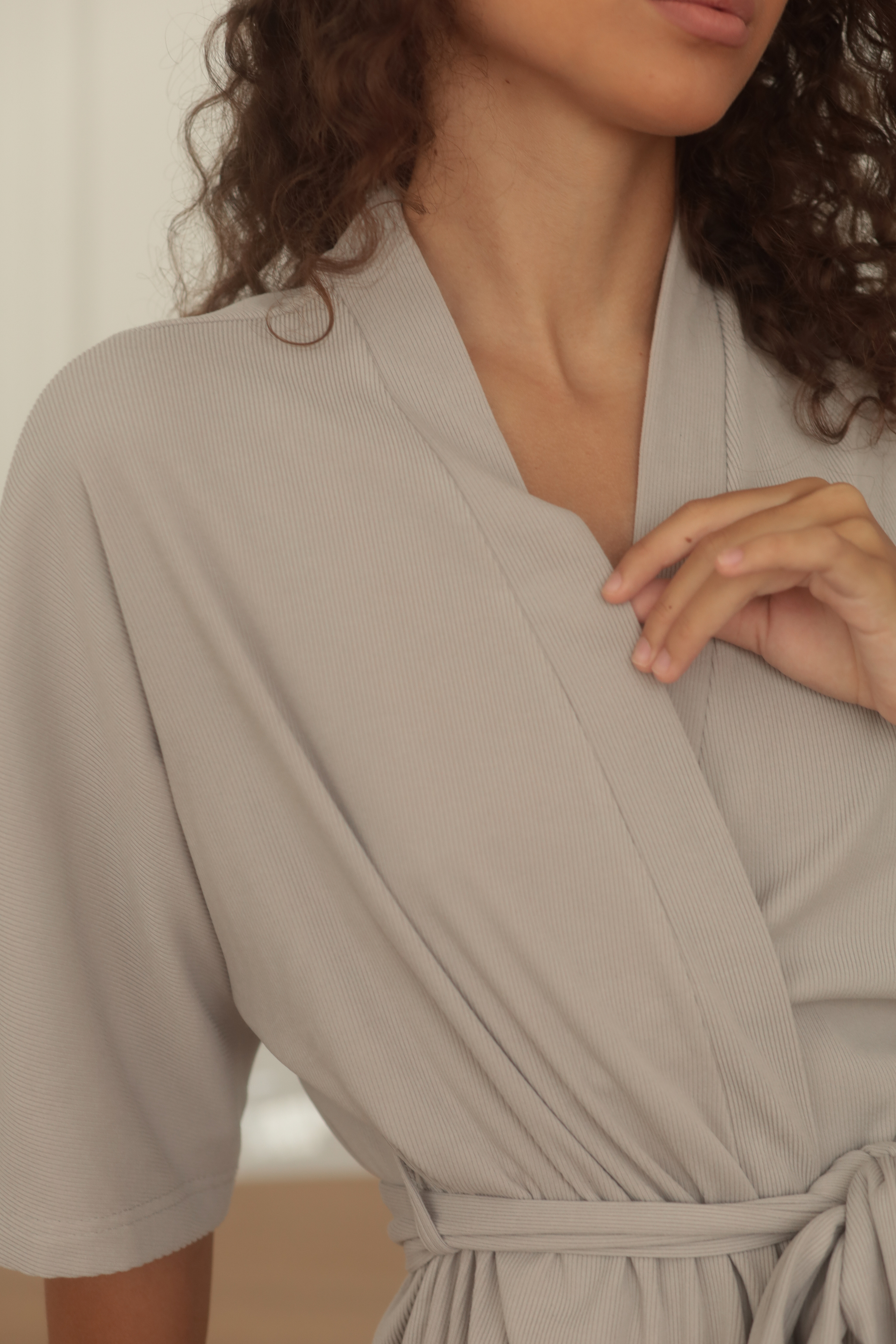 Погрузитесь в атмосферу домашнего уюта вместе с женским велюровым халатом «Мини» в изысканный рубчик! Элегантность полуприталенного кроя, мягкость материалов и удобное дополнение — съёмный пояс создадут вам безупречный образ и подчеркнут вашу индивидуальность. Рукав три четверти придаст утончённости, а оптимальная длина до бёдер обеспечит свободу движений и максимальную функциональность.