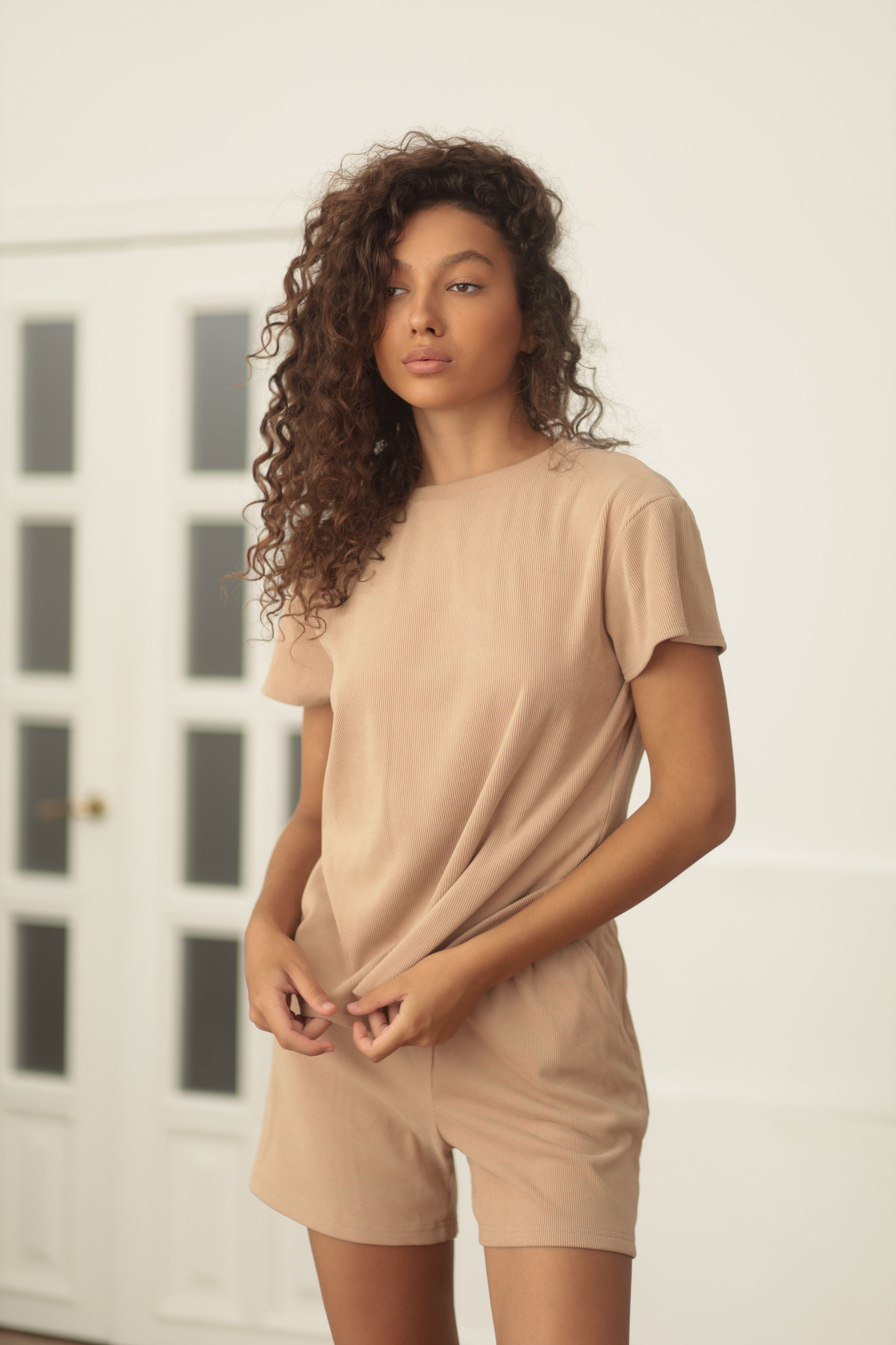 Женский комплект из мягкого велюра – комфорт и стиль в одном комплекте! Удобная футболка свободного кроя с мягким округлым вырезом. Краткие шорты с удобным поясом-резинкой подчеркнут фигуру, а боковые карманы добавят практичности. Идеальный выбор для прогулок и повседневного образа. Мягкость ткани обеспечивает приятные тактильные ощущения и свободу движений при носке.