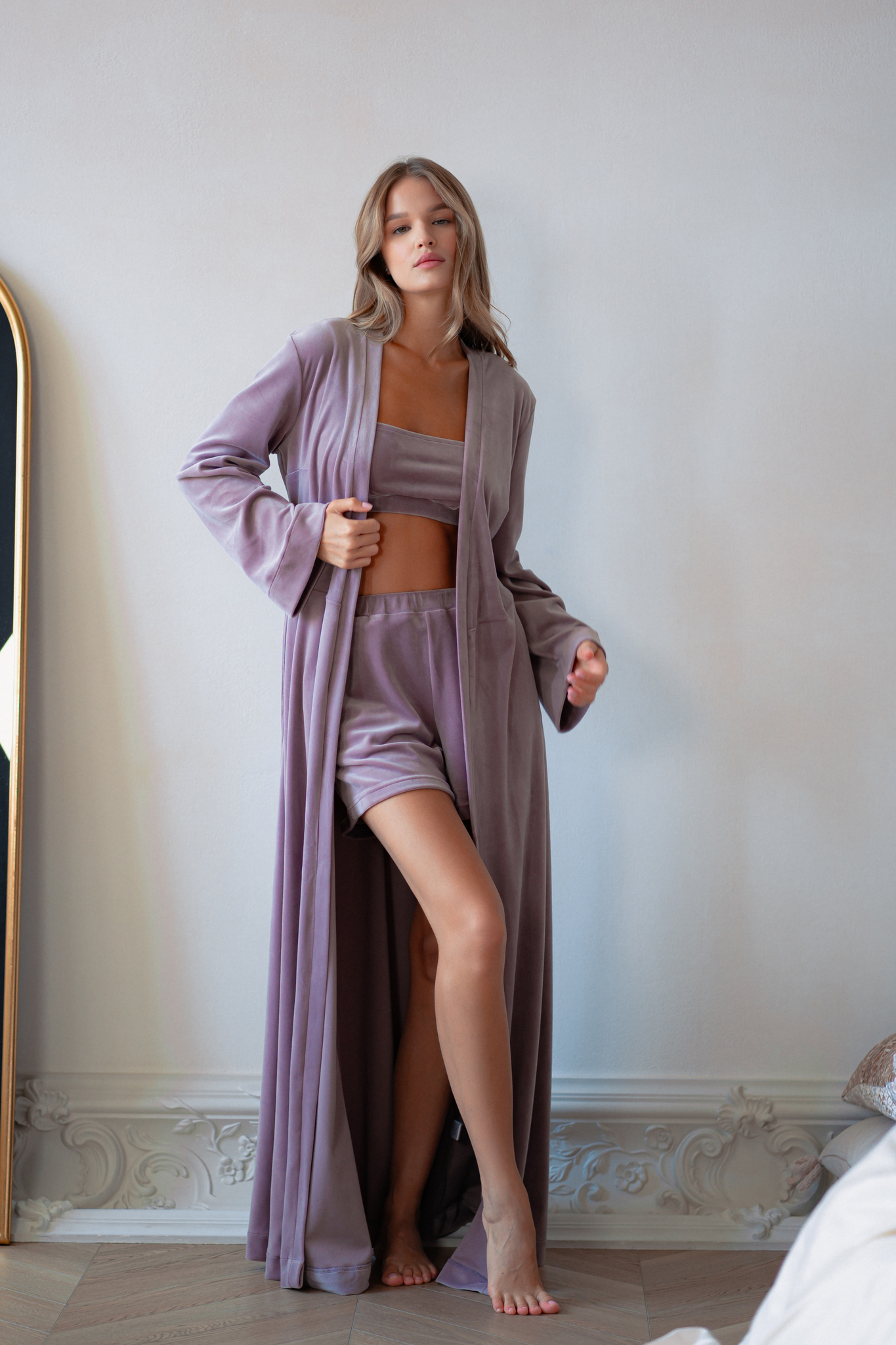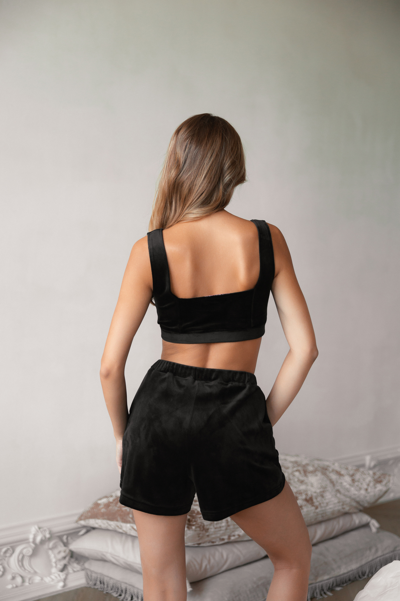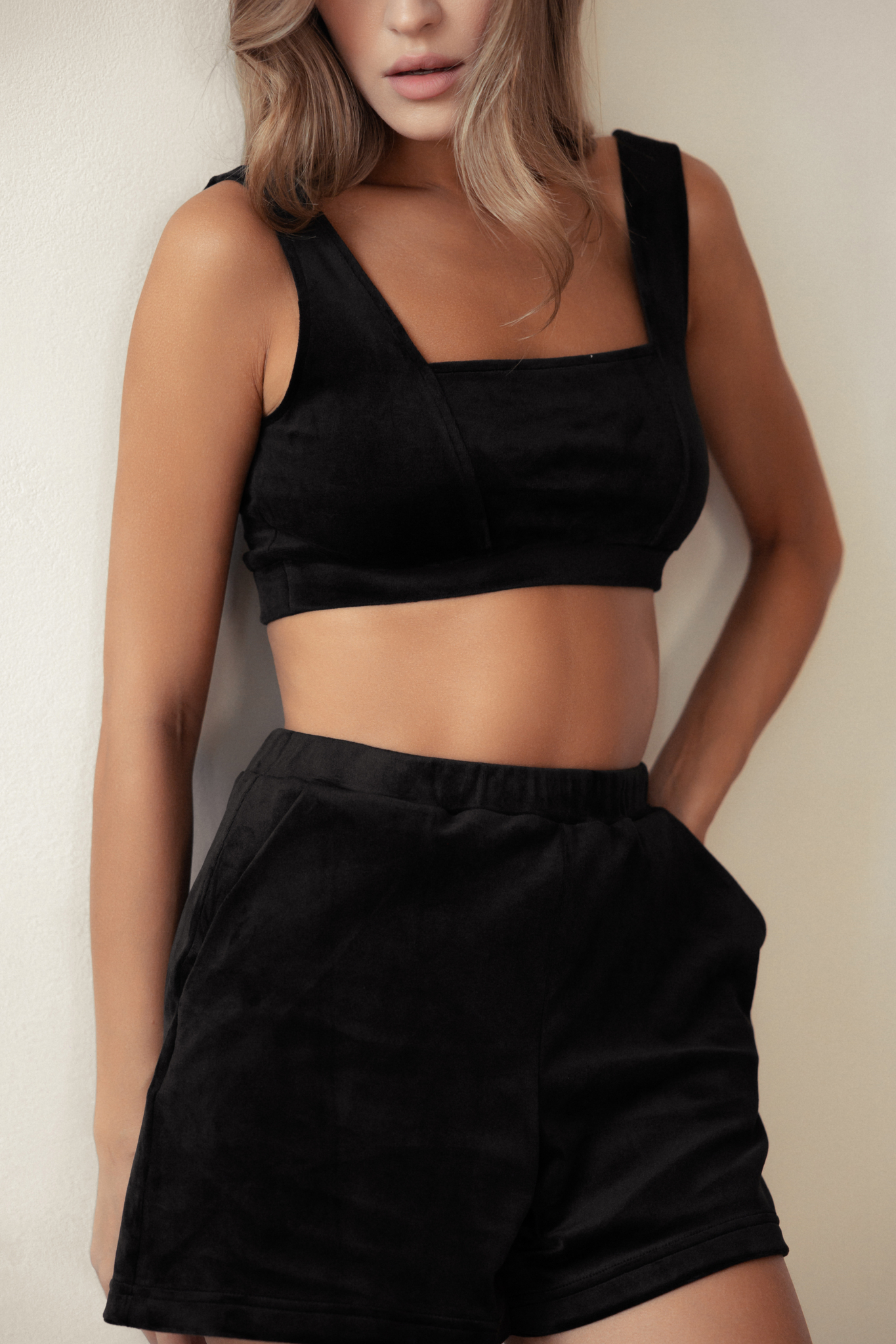 Ощути комфорт и стиль одновременно! Этот комплект из топа и шортиков из мягкого велюра – твой идеальный спутник как дома, так и на прогулках. Топ с удобной квадратной горловиной и мягкими бретелями мягко облегает фигуру, а шортики подчеркивают твою индивидуальность удобством прямых линий и скрытым пояском-резинкой. Кармашки добавят практичности этому иг4ривому образу! Наслаждайся комфортом без компромиссов!