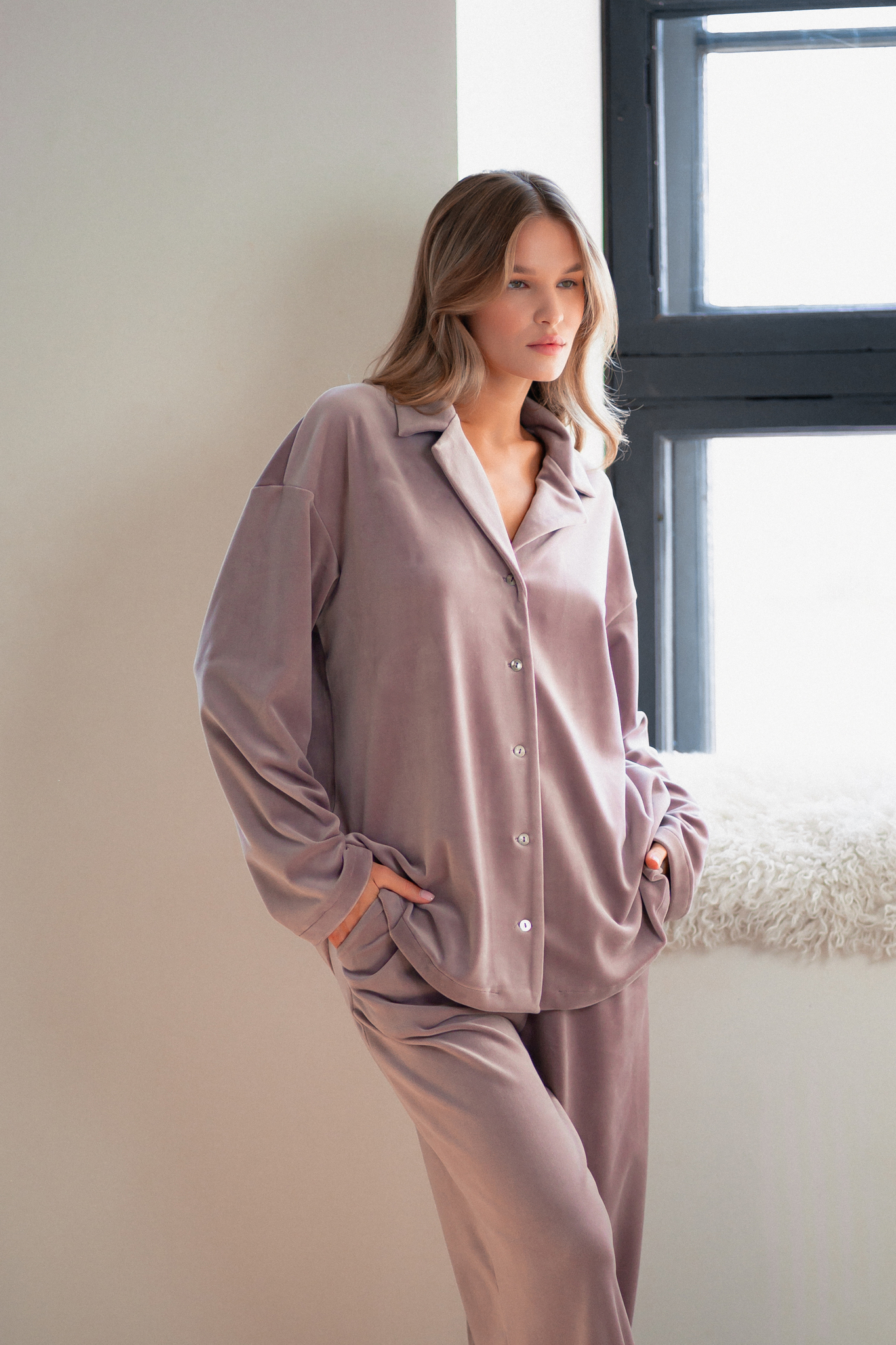 Очаровательный костюмчик из мягкого велюра - просто must have этой осени! Блуза на пуговичках подчёркивает индивидуальность, а удобные брюки с резинкой по талии подойдут любой фигуре. Это тот самый комплект, который подарит комфорт и стиль одновременно – идеален как для прогулки так и домашнего уюта. Чувствуйте себя звездой каждый день!