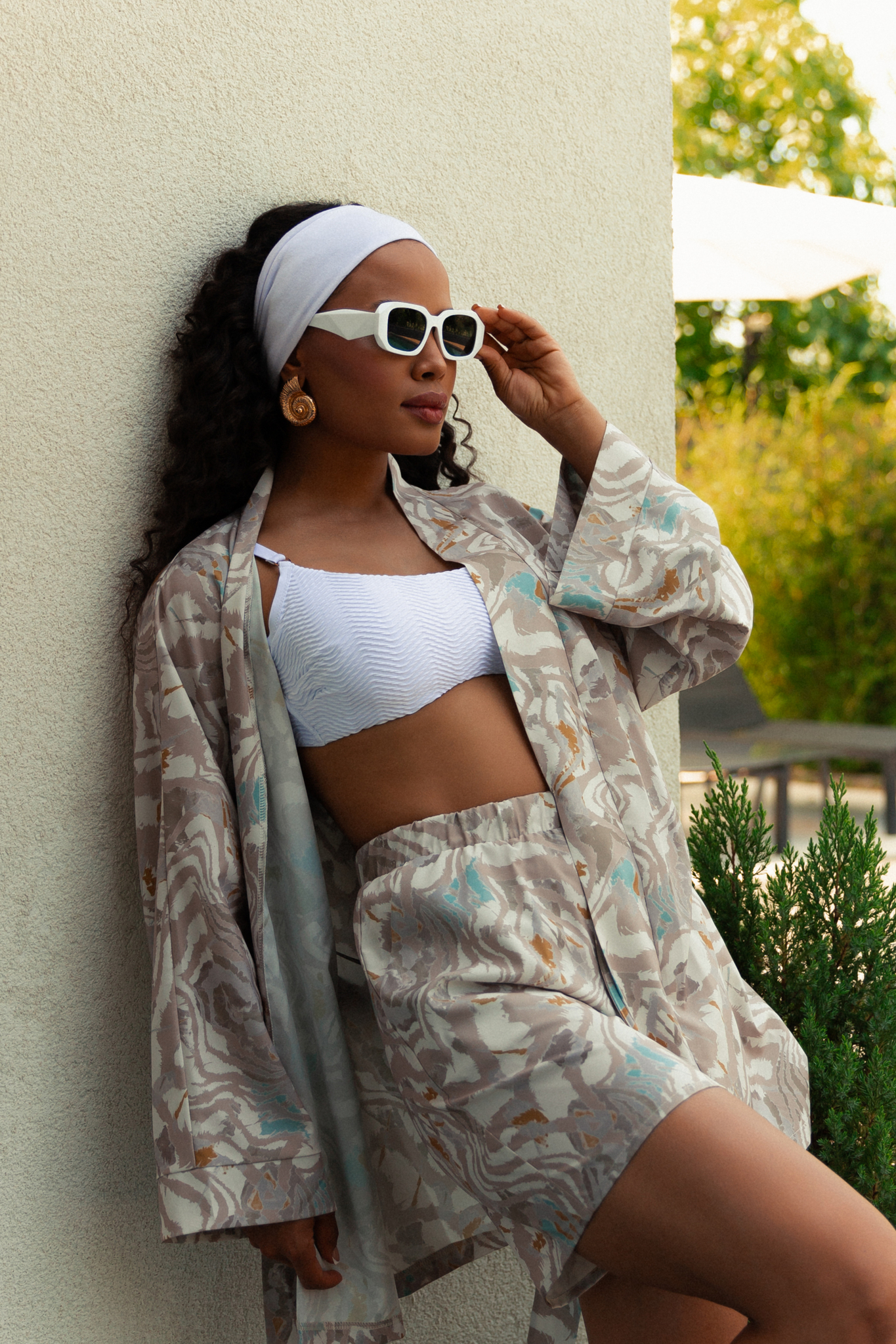 Хочешь чувствовать себя как звезда курорта? Пусть твой летний сезон начнется с стильного комплекта кимоно! Свободный халат с длинными рукавами и глубоким декольте подчеркнёт фигуру, а удобные шортики подарят свободу движений. Полодержатели – секрет идеального силуэта, боковые карманы – практично и удобно. Единый комплект – это всегда выигрышно и модно!