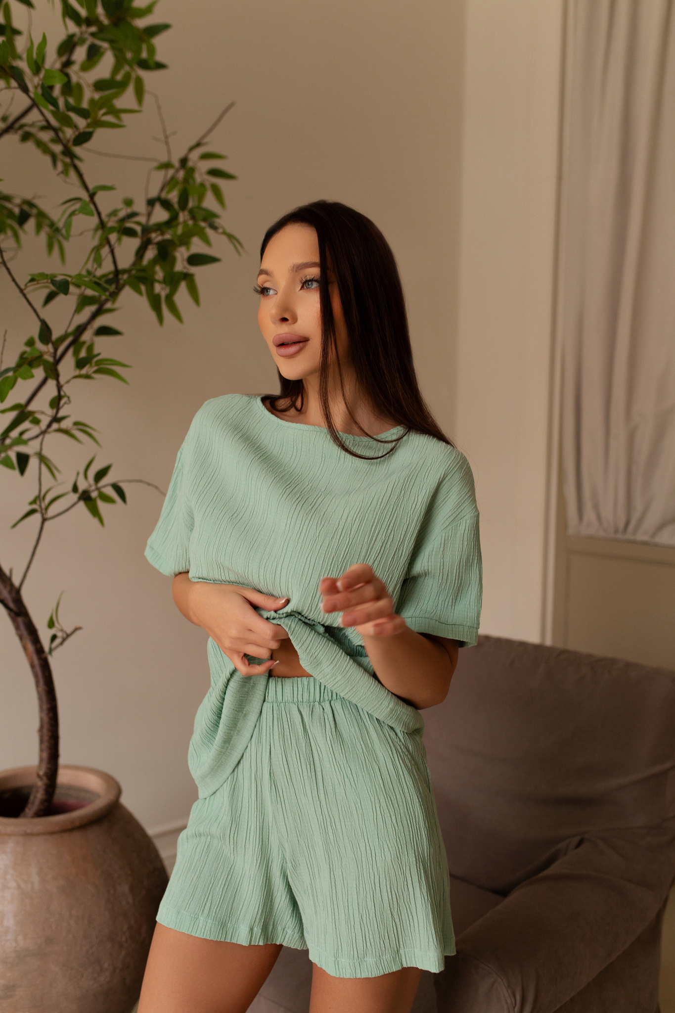 Пижама женская из нежной вискозы — твой идеальный спутник ночных часов! Свободная футболка с короткими рукавами и комфортными шортиками слегка расклешенного силуэта обеспечат свободу движений, а мягкий материал подарит удовольствие от каждого прикосновения. Эластичный пояс и удобные боковые карманы завершают образ практичности и удобства. Наслаждайся уютом каждую ночь!