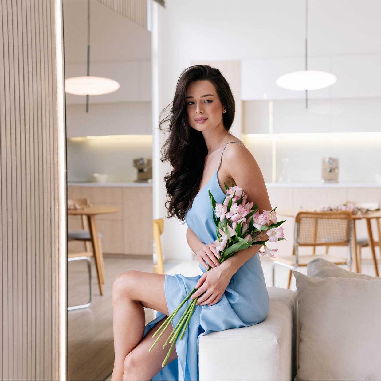 Сатиновая ночная сорочка с кружевом — приглашение к ритуалу тишины и особого времени, посвящённого только вам. Полуприлегающий силуэт подчёркивает форму, V-образное кружевное декольте нежно обрамляет линию выреза. Кокетка из кружева по спинке и по низу сорочки создаёт изысканный мотив, тонкие бретели с регуляторами позволяют выбрать идеальную посадку. Длина до середины бедра дарит свободу движений и роскошь дома.